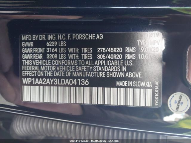 2020 PORSCHE CAYENNE | WP1AA2AY3LDA04136