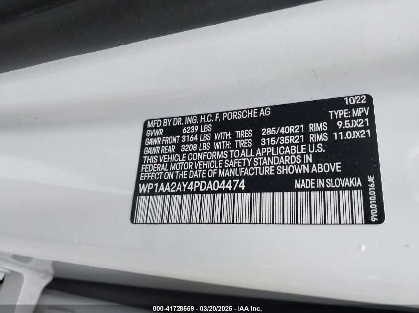 2023 PORSCHE CAYENNE | WP1AA2AY4PDA04474