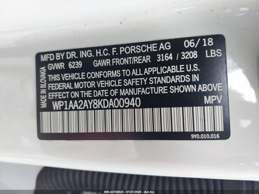 2019 PORSCHE CAYENNE | WP1AA2AY8KDA00940