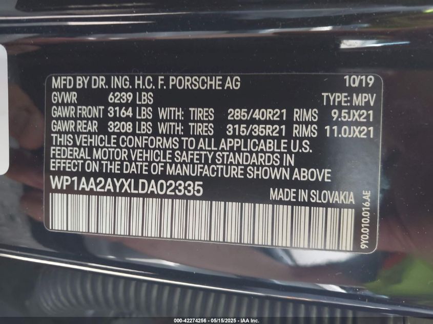 2020 PORSCHE CAYENNE | WP1AA2AYXLDA02335