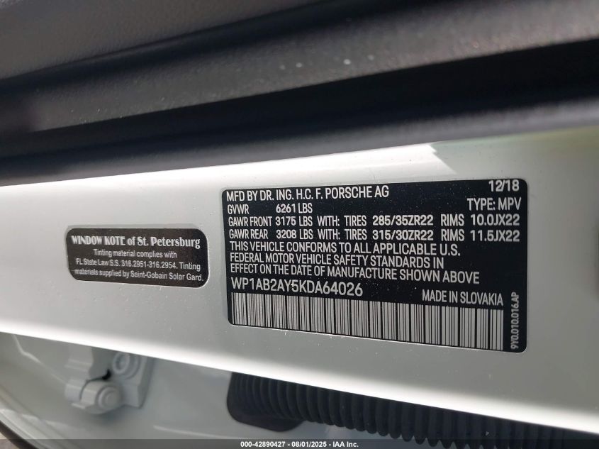 2019 PORSCHE CAYENNE | WP1AB2AY5KDA64026