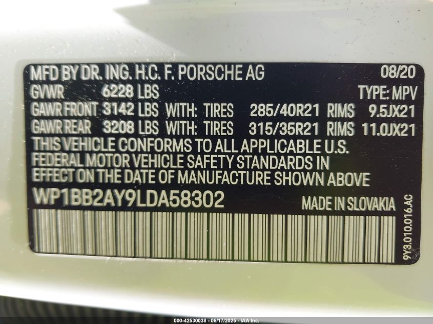 2020 PORSCHE CAYENNE | WP1BB2AY9LDA58302