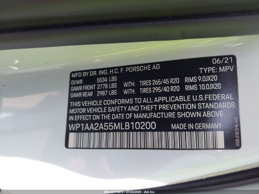 2021 PORSCHE MACAN | WP1AA2A55MLB10200