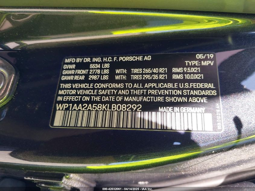 2019 PORSCHE MACAN | WP1AA2A58KLB08292