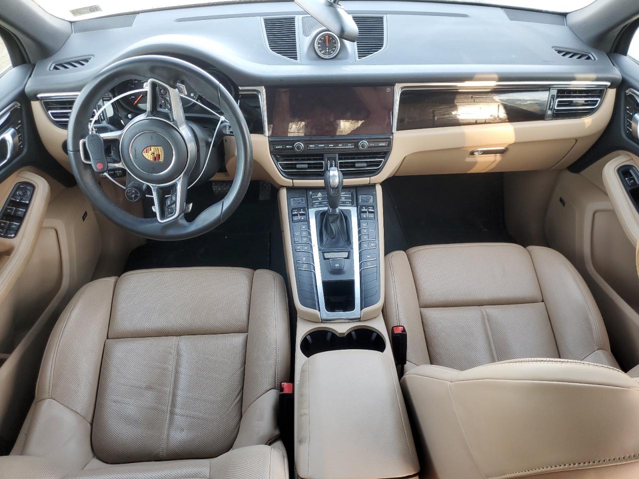 Inside, the Macan delivered true Porsche design, with rising center consoles, GT-inspired multifunction steering wheels, and analog tachometers flanked by digital displays. Base trims featured standard black leatherette with silver accents, while GTS and Turbo variants received Alcantara inserts, carbon fiber, or brushed aluminum trim, and options for Bordeaux Red or Agate Grey two-tone leather. Later models added the new 10.9” PCM touchscreen with smartphone integration and voice control. Optional GTS interior packages introduced red or green stitching, Sport Chrono stopwatch caps, and special GTS badging.