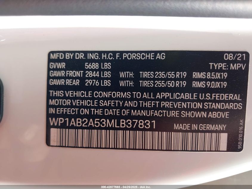 2021 PORSCHE MACAN | WP1AB2A53MLB37831