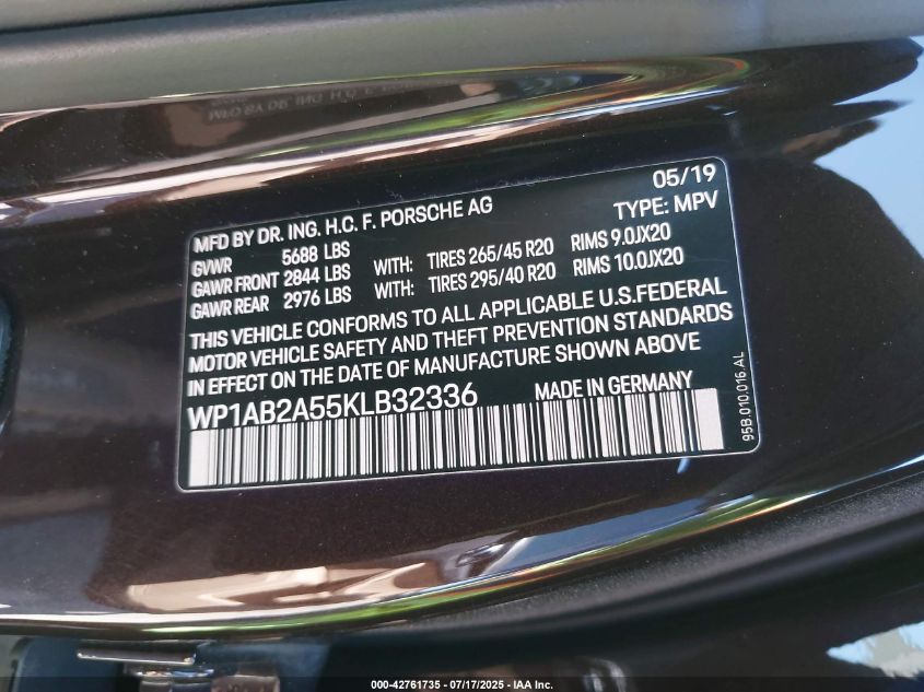 2019 PORSCHE MACAN | WP1AB2A55KLB32336