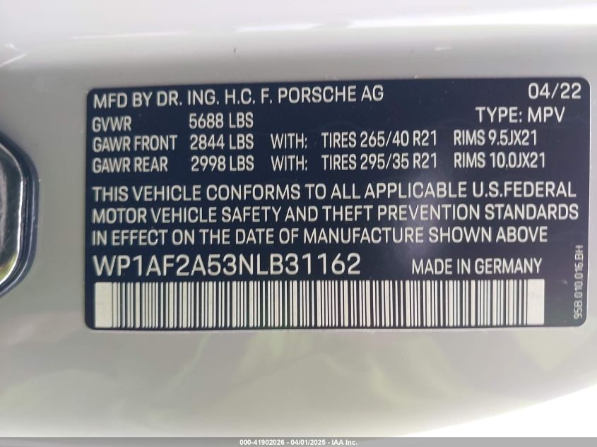 2022 PORSCHE MACAN | WP1AF2A53NLB31162