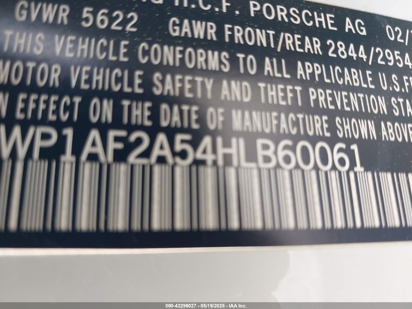 2017 PORSCHE MACAN | WP1AF2A54HLB60061