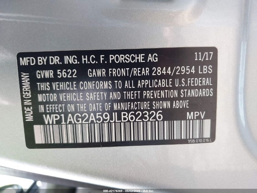 2018 PORSCHE MACAN | WP1AG2A59JLB62326