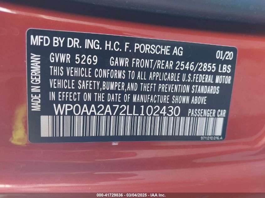 2020 PORSCHE PANAMERA | WP0AA2A72LL102430