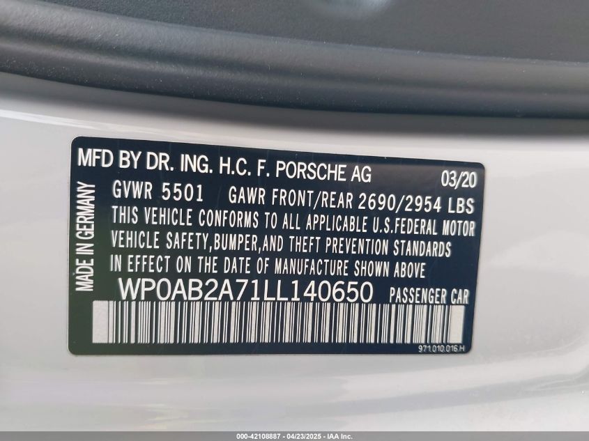 2020 PORSCHE PANAMERA | WP0AB2A71LL140650