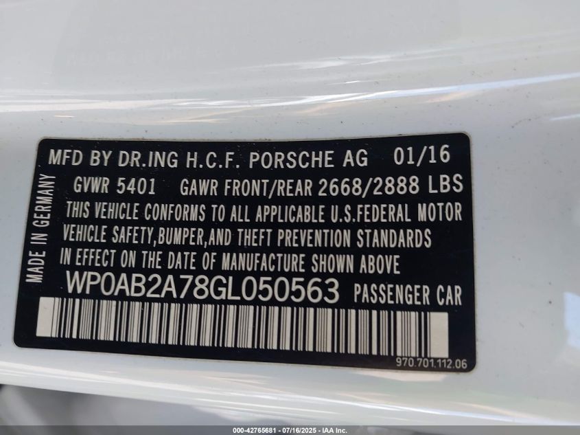 2016 PORSCHE PANAMERA | WP0AB2A78GL050563