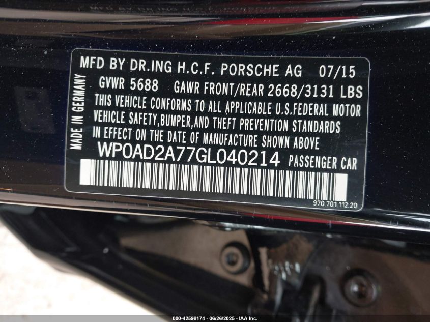 2016 PORSCHE PANAMERA | WP0AD2A77GL040214
