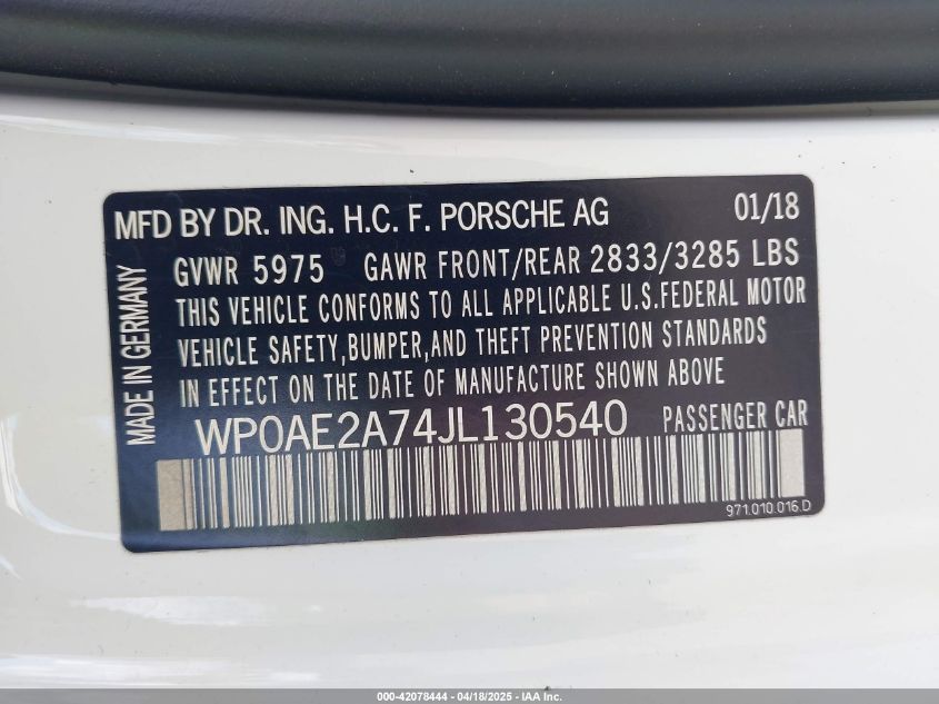 2018 PORSCHE PANAMERA | WP0AE2A74JL130540