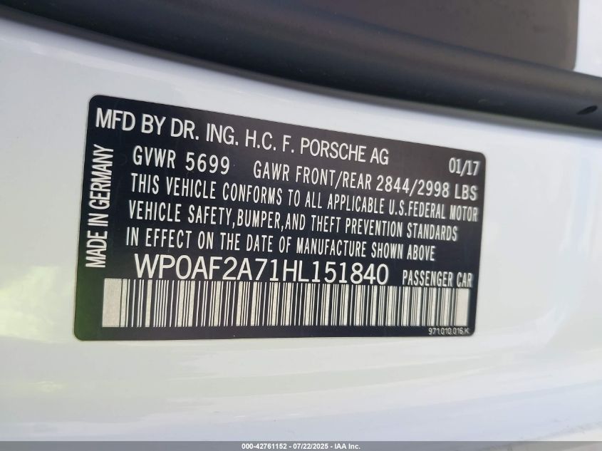 2017 PORSCHE PANAMERA | WP0AF2A71HL151840