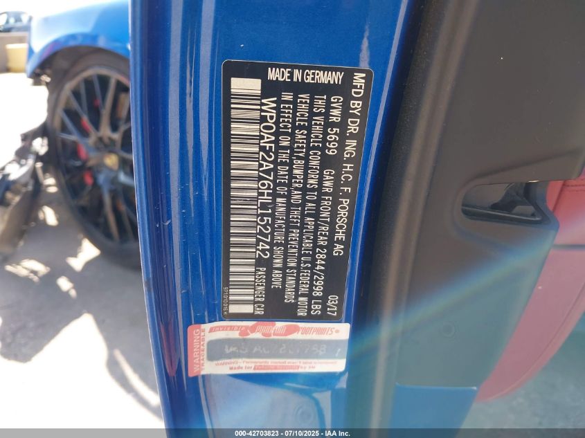 2017 PORSCHE PANAMERA | WP0AF2A76HL152742