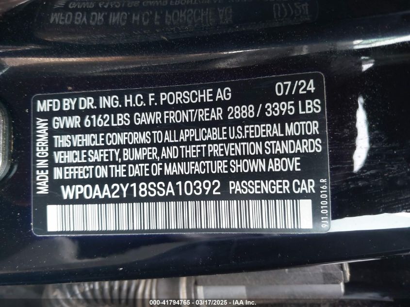 2021 PORSCHE TAYCAN | WP0AA2Y14MSA17231
