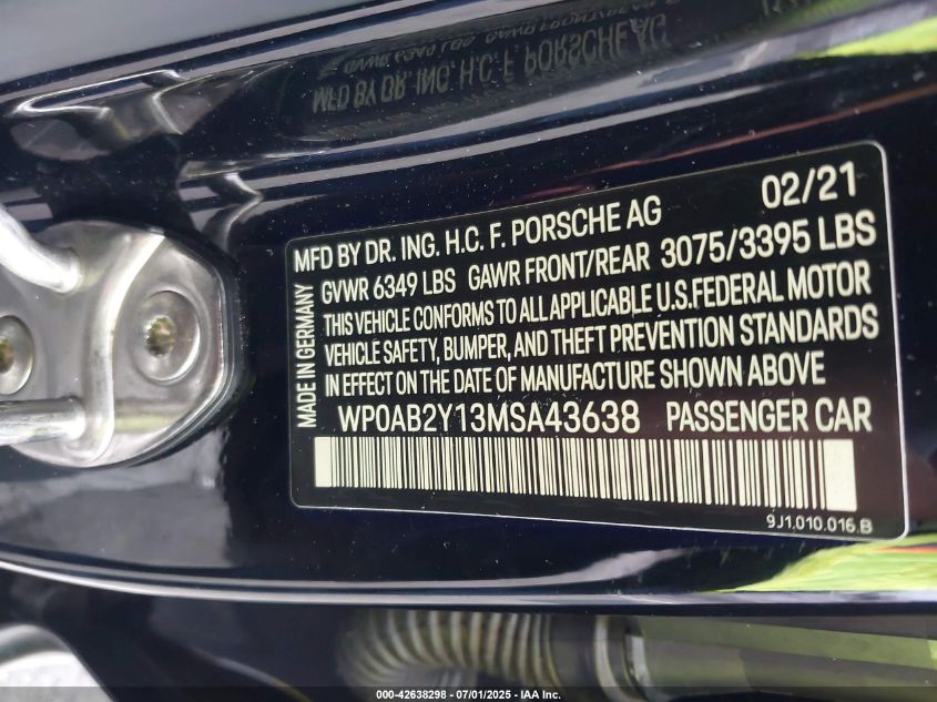 2021 PORSCHE TAYCAN | WP0AB2Y13MSA43638