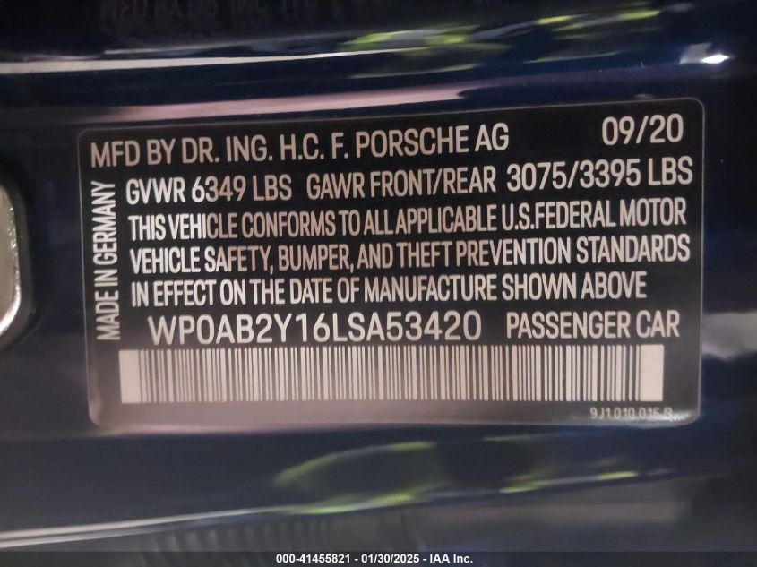 2020 PORSCHE TAYCAN | WP0AB2Y16LSA53420