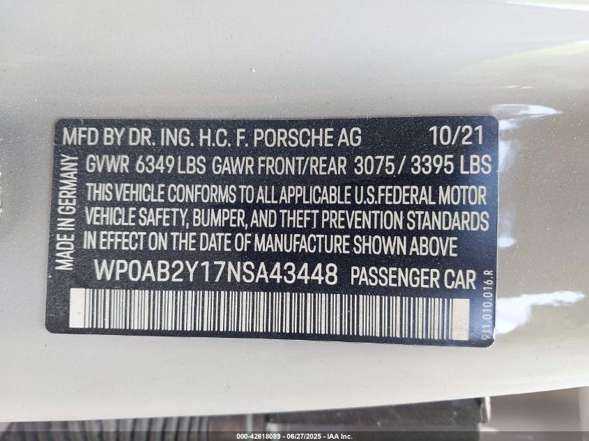 2022 PORSCHE TAYCAN | WP0AB2Y17NSA43448