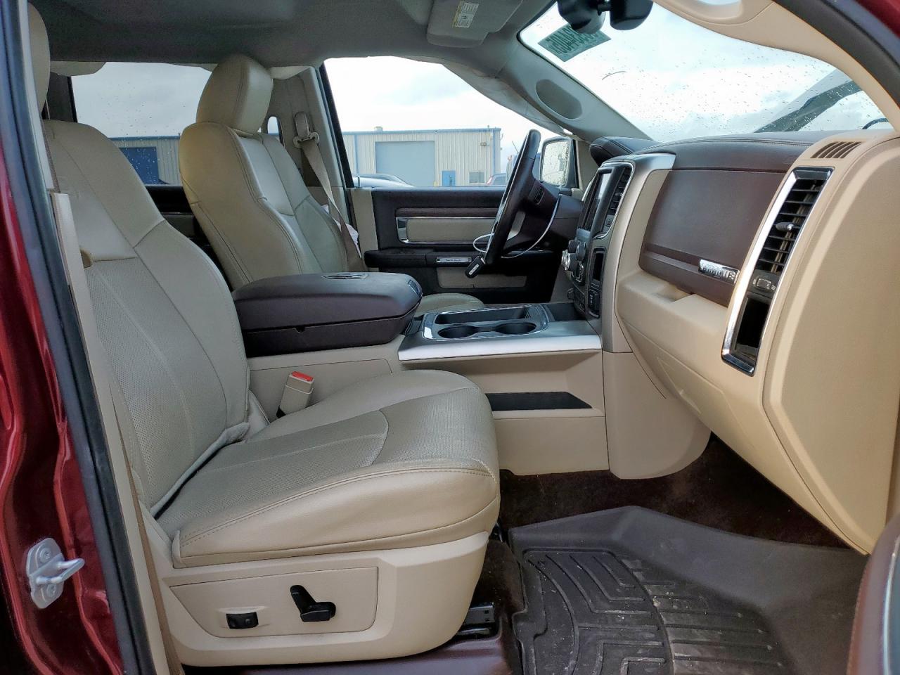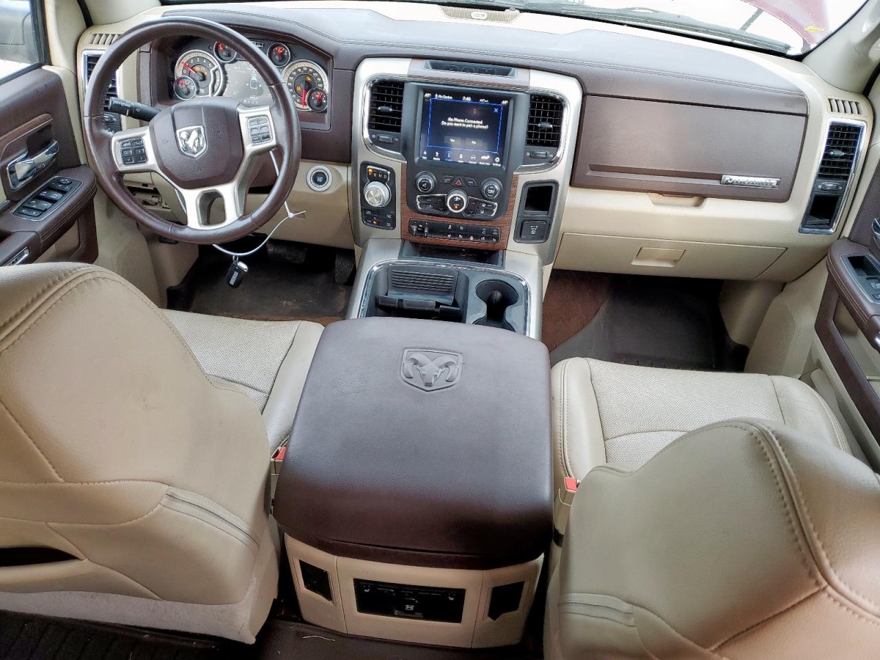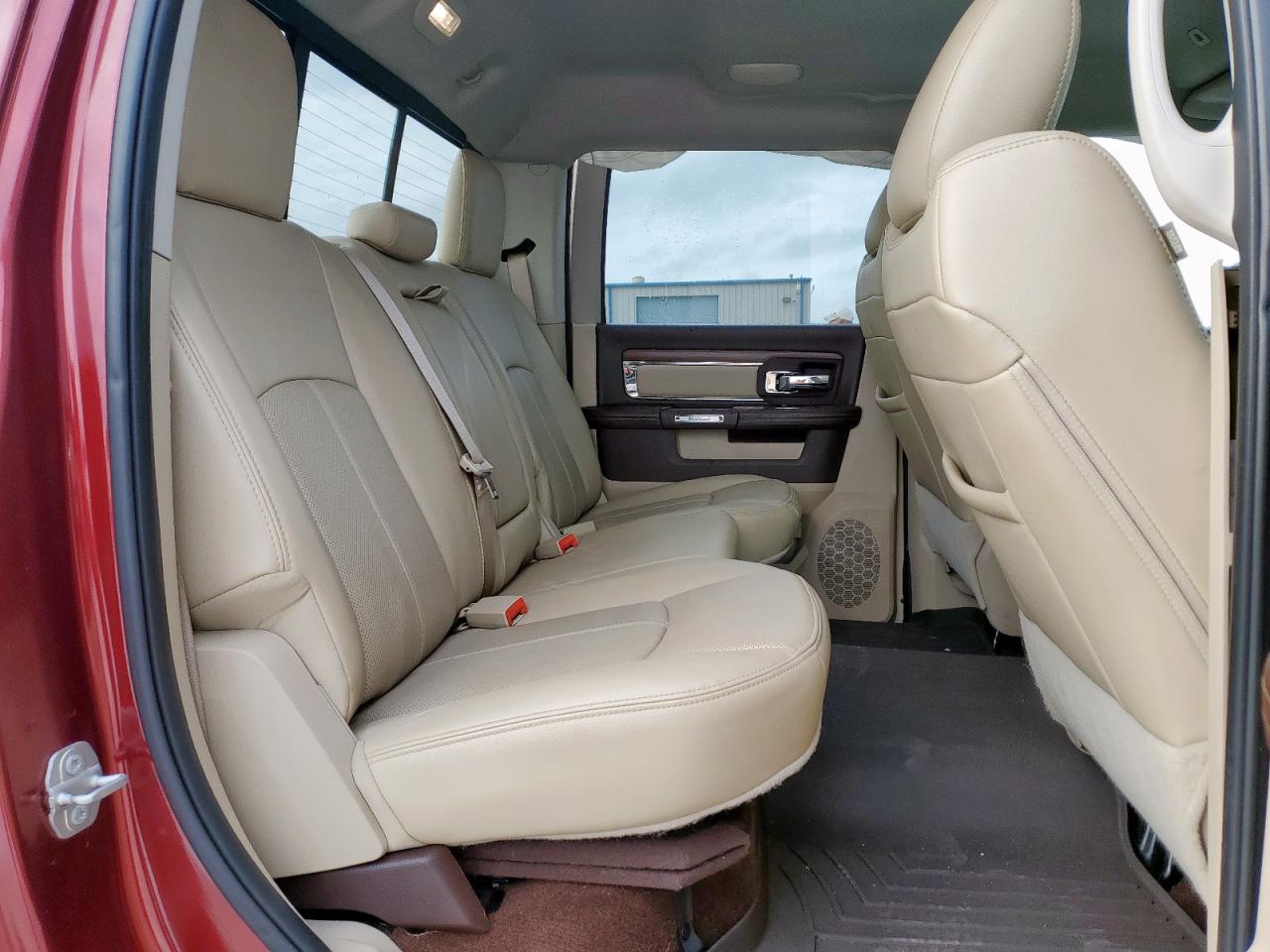 Inside, the Ram delivered class-leading refinement. Lower trims used durable cloth and vinyl, while higher trims like Laramie, Limited, and Longhorn introduced real wood, full-grain leather, and laser-etched patterns. Options included heated/ventilated seats, a massive 8.4-inch Uconnect infotainment system, rotary gear selector, and real aluminum accents. The rear seats in Crew Cab models were among the most spacious in the segment, with flip-up cushions and underfloor storage.