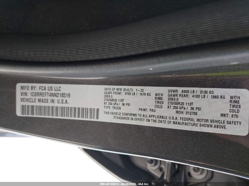 2022 RAM 1500 | 1C6RREFT4NN218519
