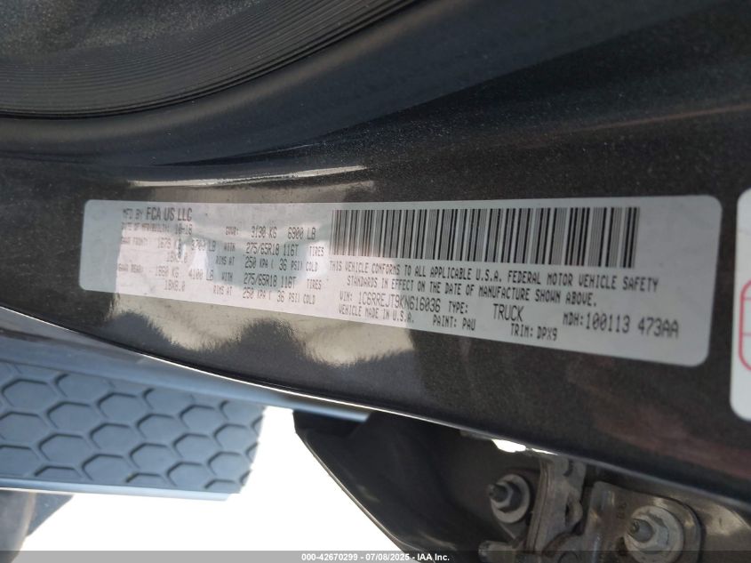 2019 RAM 1500 | 1C6RREJT9KN616036