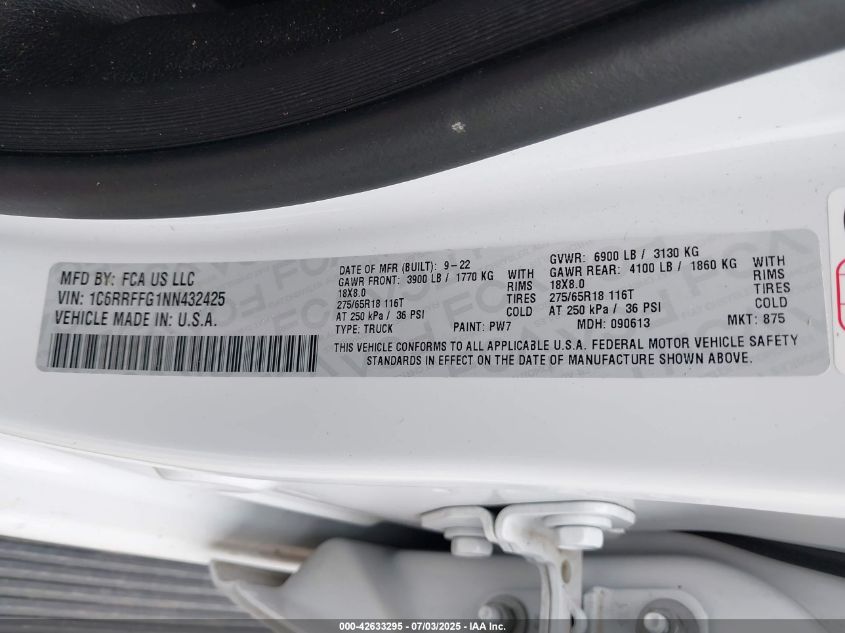 2022 RAM 1500 | 1C6RRFFG1NN432425