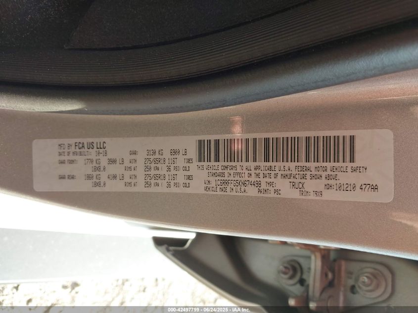 2019 RAM 1500 | 1C6RRFFG5KN674498