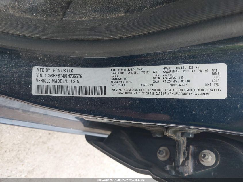 2021 RAM 1500 | 1C6SRFBT4MN736576