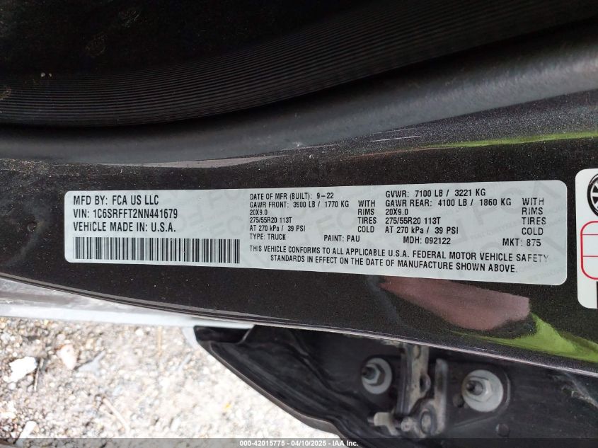 2022 RAM 1500 | 1C6SRFFT2NN441679