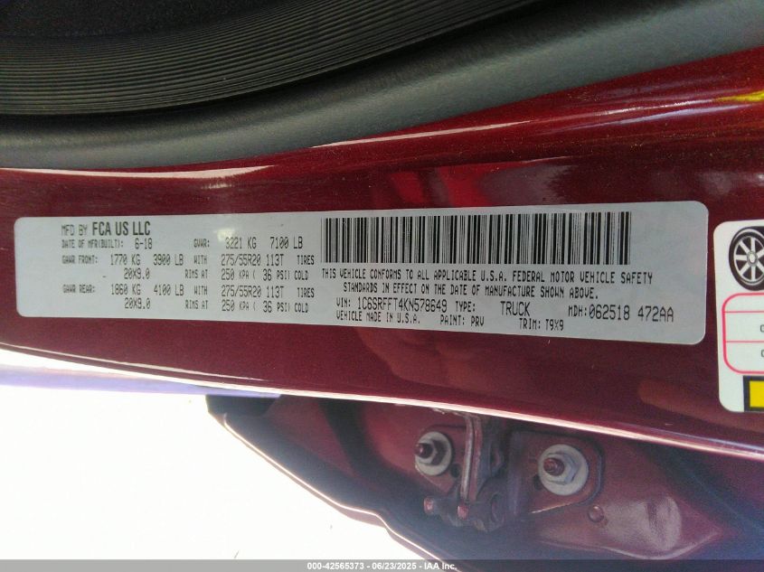 2019 RAM 1500 | 1C6SRFFT4KN578649