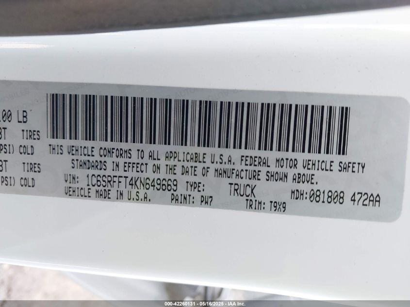 2019 RAM 1500 | 1C6SRFFT4KN649669