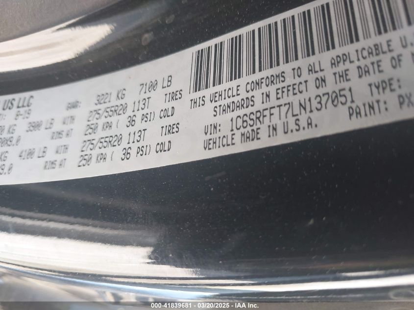 2020 RAM 1500 | 1C6SRFFT7LN137051