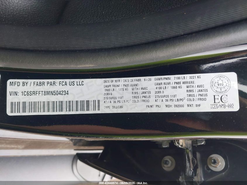 2021 RAM 1500 | 1C6SRFFT8MN504234