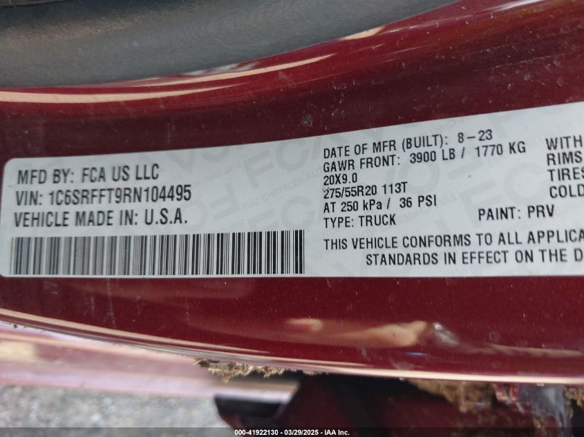 2024 RAM 1500 | 1C6SRFFT9RN104495