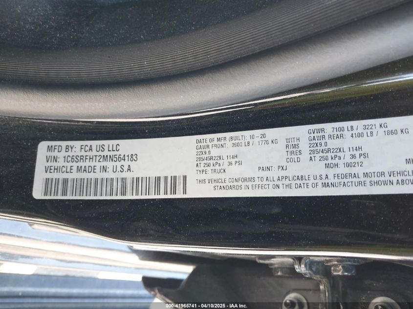 2021 RAM 1500 | 1C6SRFHT2MN564183
