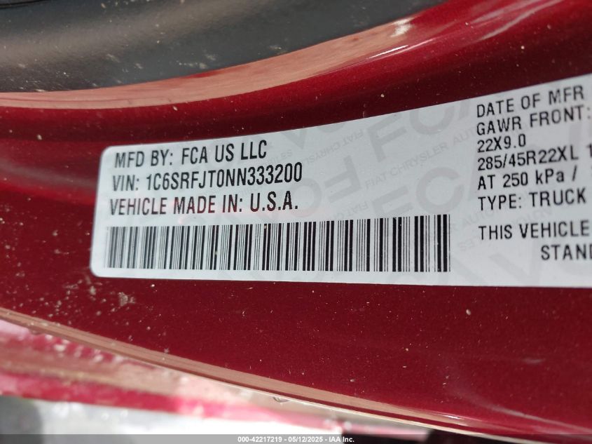 2022 RAM 1500 | 1C6SRFJT0NN333200