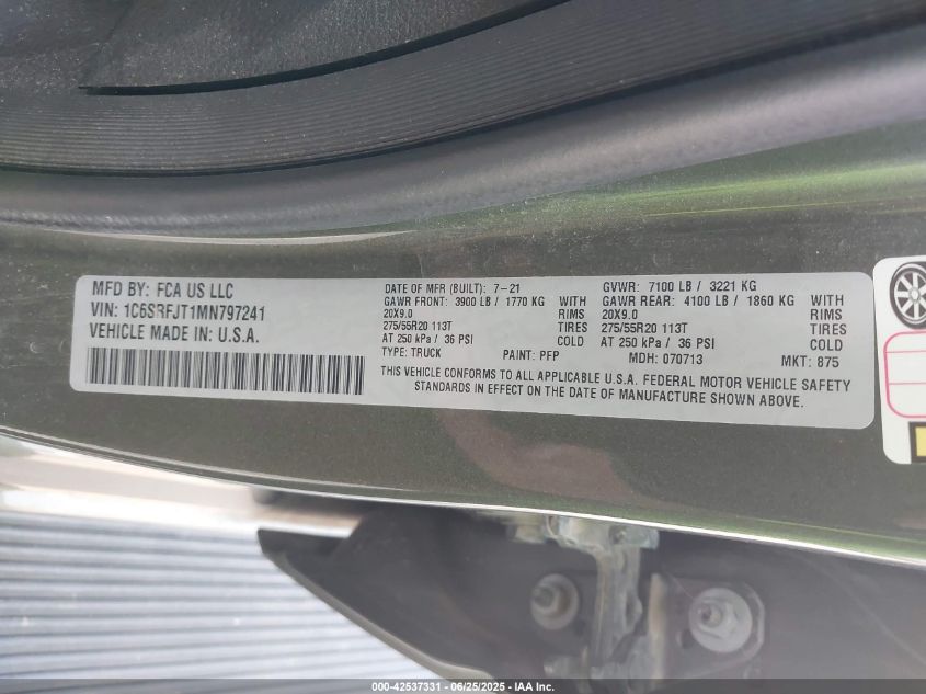 2021 RAM 1500 | 1C6SRFJT1MN797241