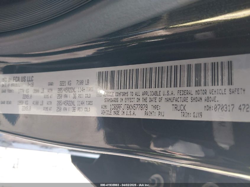 2019 RAM 1500 | 1C6SRFJT6KN577879