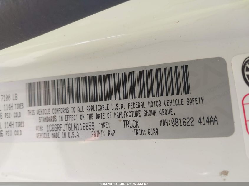 2020 RAM 1500 | 1C6SRFJT6LN116859