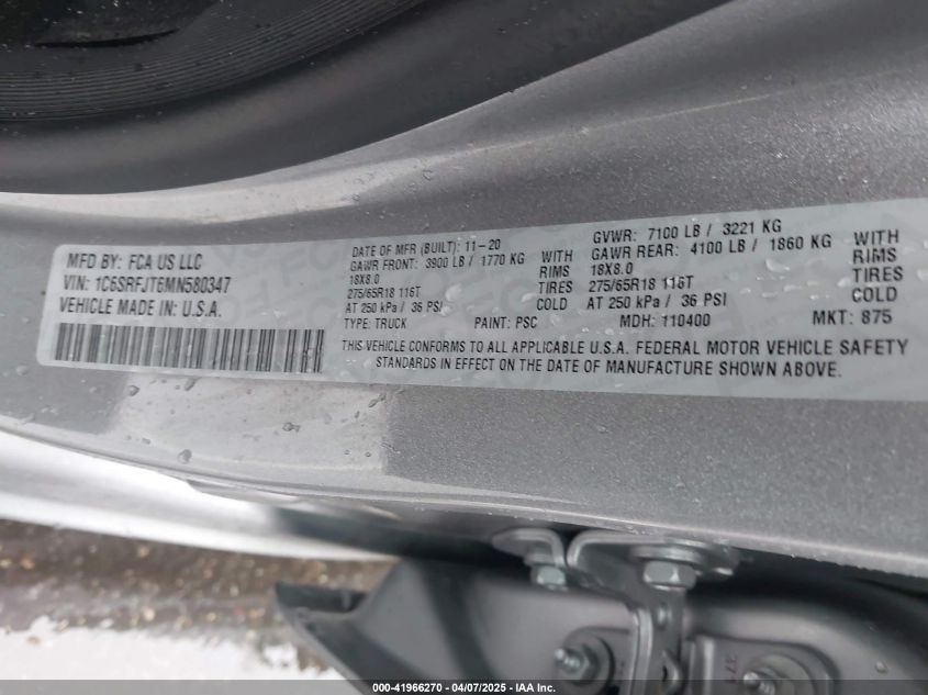 2021 RAM 1500 | 1C6SRFJT6MN580347