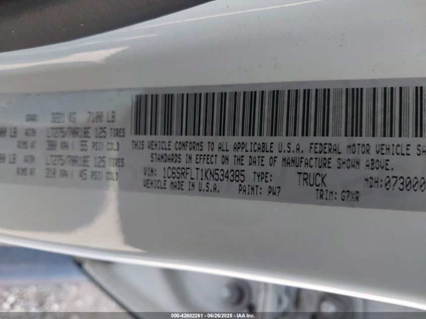 2019 RAM 1500 | 1C6SRFLT1KN534385