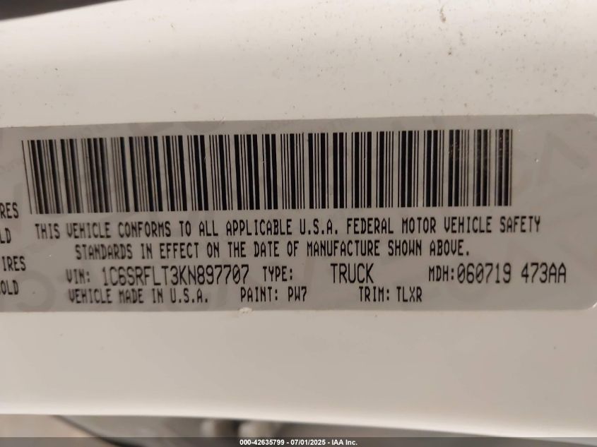 2019 RAM 1500 | 1C6SRFLT3KN897707