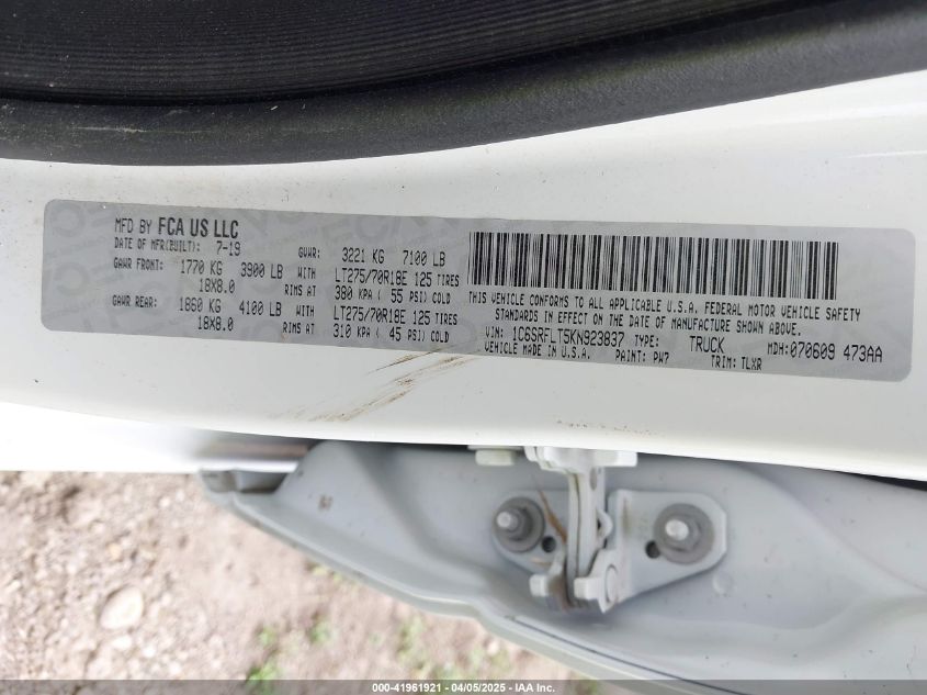 2019 RAM 1500 | 1C6SRFLT5KN923837