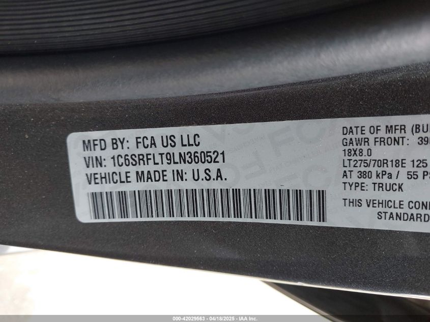 2020 RAM 1500 | 1C6SRFLT9LN360521