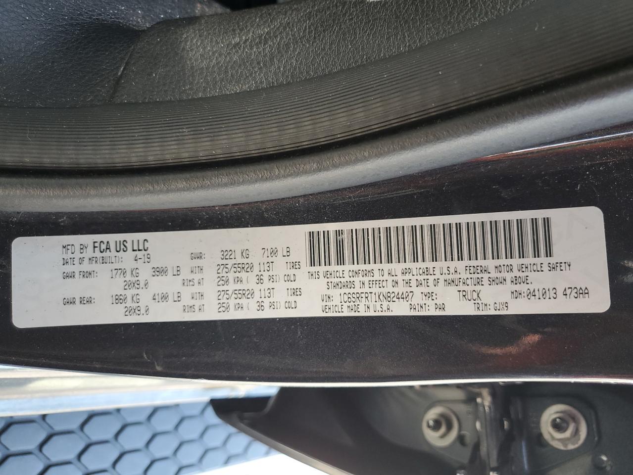 2019 RAM 1500 | 1C6SRFRT1KN824407