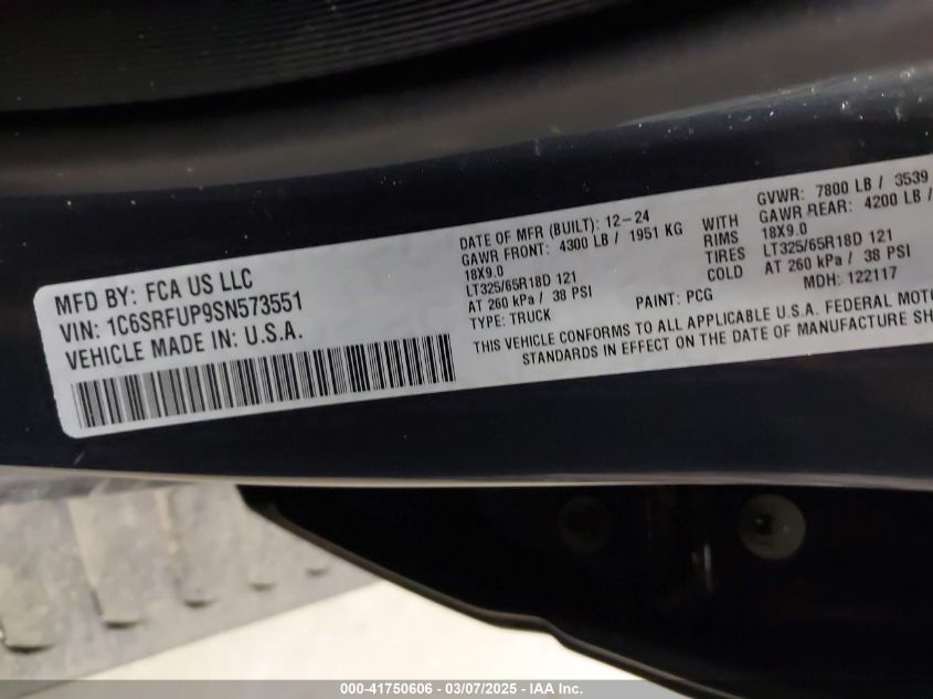 2025 RAM 1500 | 1C6SRFUP9SN573551