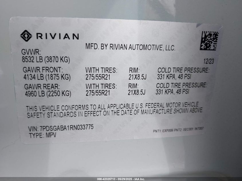 2024 RIVIAN R1S | 7PDSGABA1RN033775
